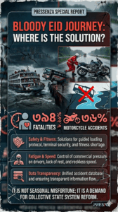 The transport system, known as Bangladesh’s lifeline, is now a name of terror for the common people. When millions return home for their roots during festivals, returning as corpses due to state mismanagement is unacceptable. Unless accountability is ensured, this ‘Bloody Eid Journey’ will remain nothing more than an annual statistic.