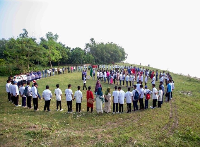 A Peace Symbol was made at Ambagan of Sara Union on the banks of the Padma River, Ishwardi, Pabna. (19 October 2024)