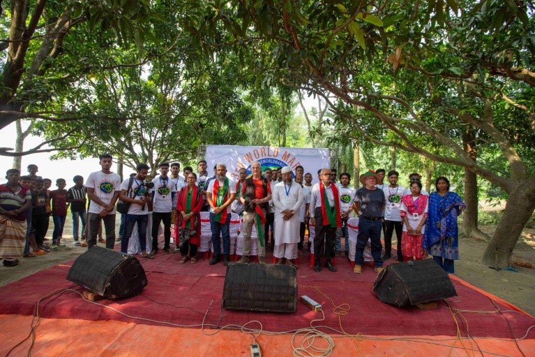 On October 16, 2024, the World March Base team members– Rafael de la Rubia, Antonio Carvallo, and Decler Hague, entered Bangladesh to bring a message of peace and non-violence much needed in this day and age and in all corners of the globe.