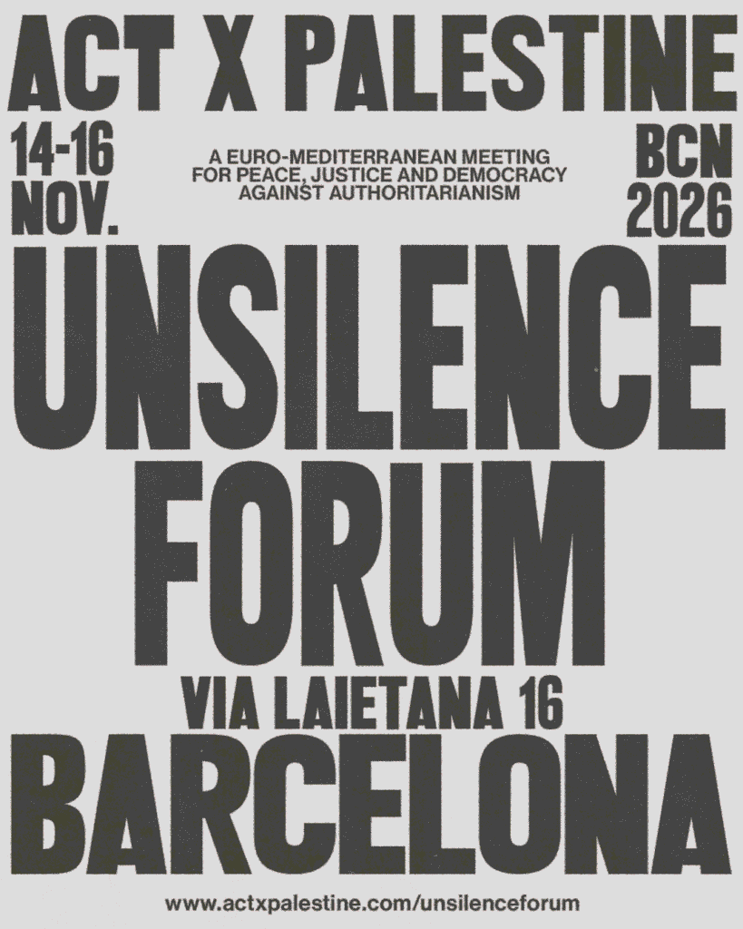 The UNSILENCE FORUM is part of the international campaign ACTxPALESTINE, a global call led by major Palestinian organisations and a wide Euro-Mediterranean network, to ensure humanitarian aid, the reconstruction of Gaza and an end to impunity for genocide and occupation.